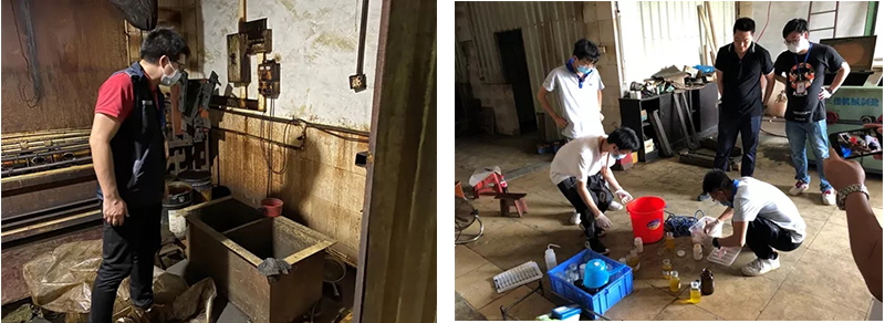 近日,橫瀝生態環境分局接群眾有獎舉報,反映位於橫瀝鎮神山工業城附件一家五金廠存在非法電鍍生產、生產廢水直排的違法行為。接舉報後,橫瀝生態環境分局進行了周密部署,安排工作人員到舉報地點周邊進行了多次“踩點”,弄清了被舉報企業的具體位置、周邊環境、生產排汙情況、生產規律等情況後,於2020年5月7日聯合橫瀝公安分局對該工廠進行查處。