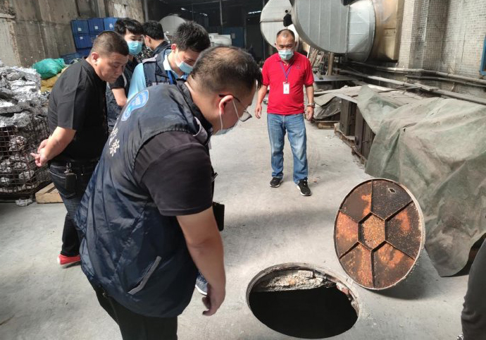當天下午,執法人員到達該企業,發現企業一樓的廢氣汙染防治設施(噴淋塔)沒有開啟,於是對企業生產車間進行詳細排查,進入打磨、拋光生產車間時,執法人員看到觸目驚心的一幕——透過被鐵網圍住的窗戶,企業的後山竟被染上了一片銀灰色!