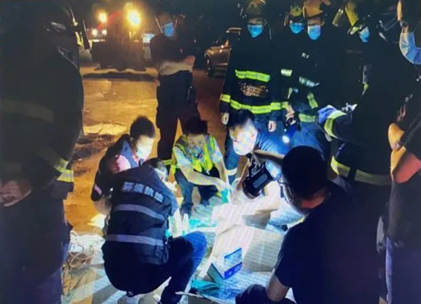 4月30日晚23時20分左右,新橋派出所接到市民舉報稱,有一輛藍色貨車停放在金元三路路邊並泄漏出黃綠色不明液體,氣味刺鼻。轄區警長張成洪接警後立即前往現場,從遠處就看到車輛周圍有煙霧飄出,張成洪預判車內可能是易燃易爆的危險品。